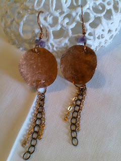 Ciao a tutti...questi sono tra i primi orecchini fatti in lastra di rame...sono ancora agli inizi, ma la cosa mi affascina e mi da molta soddisfazione.....